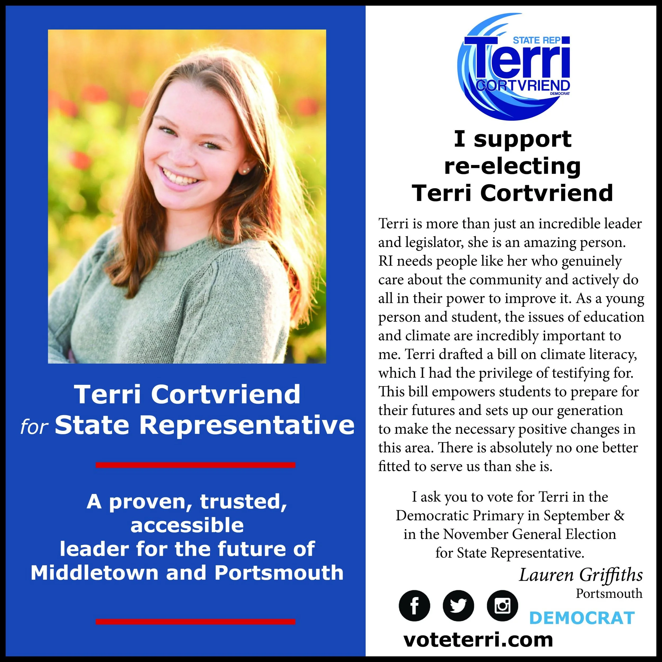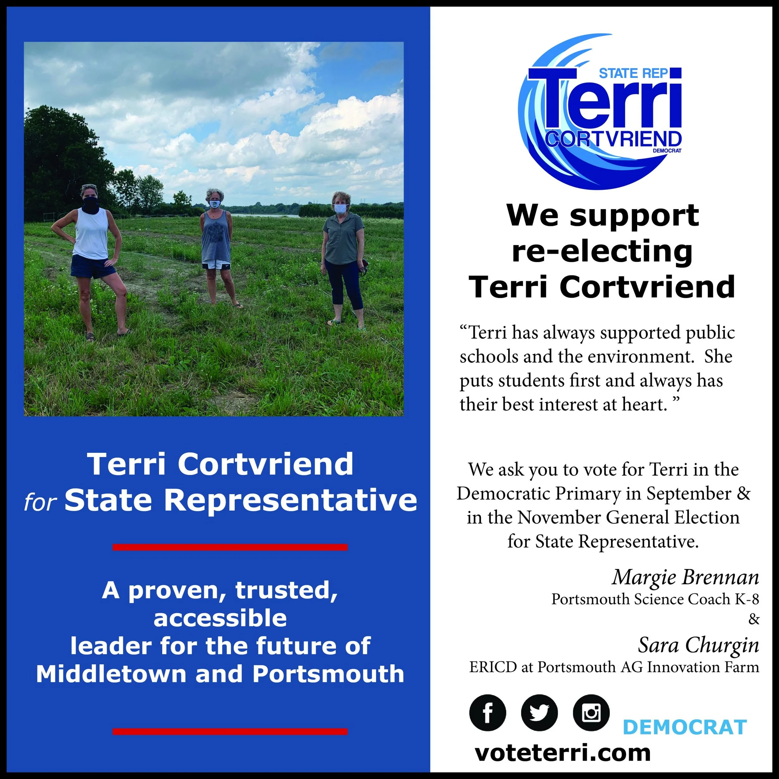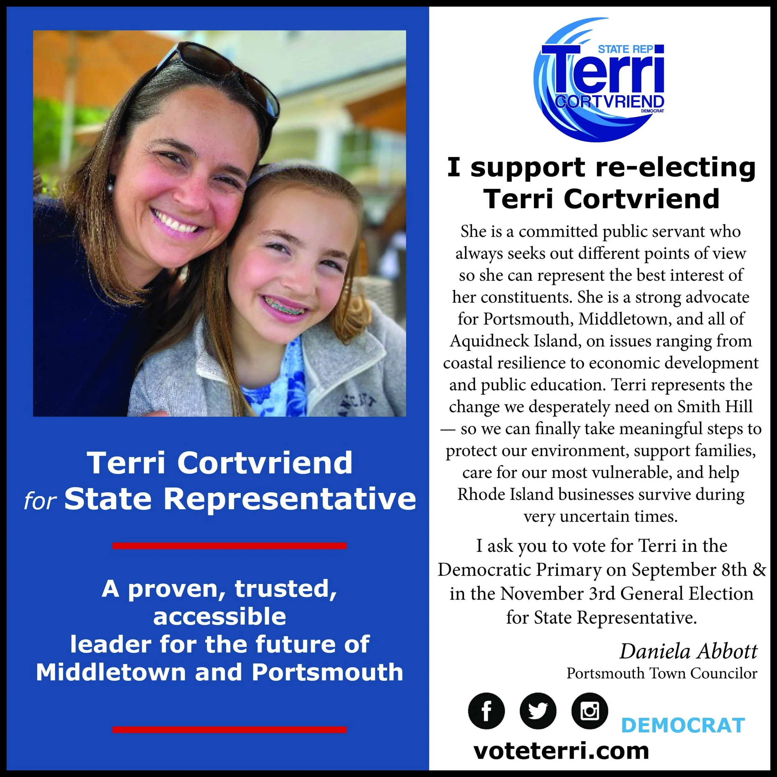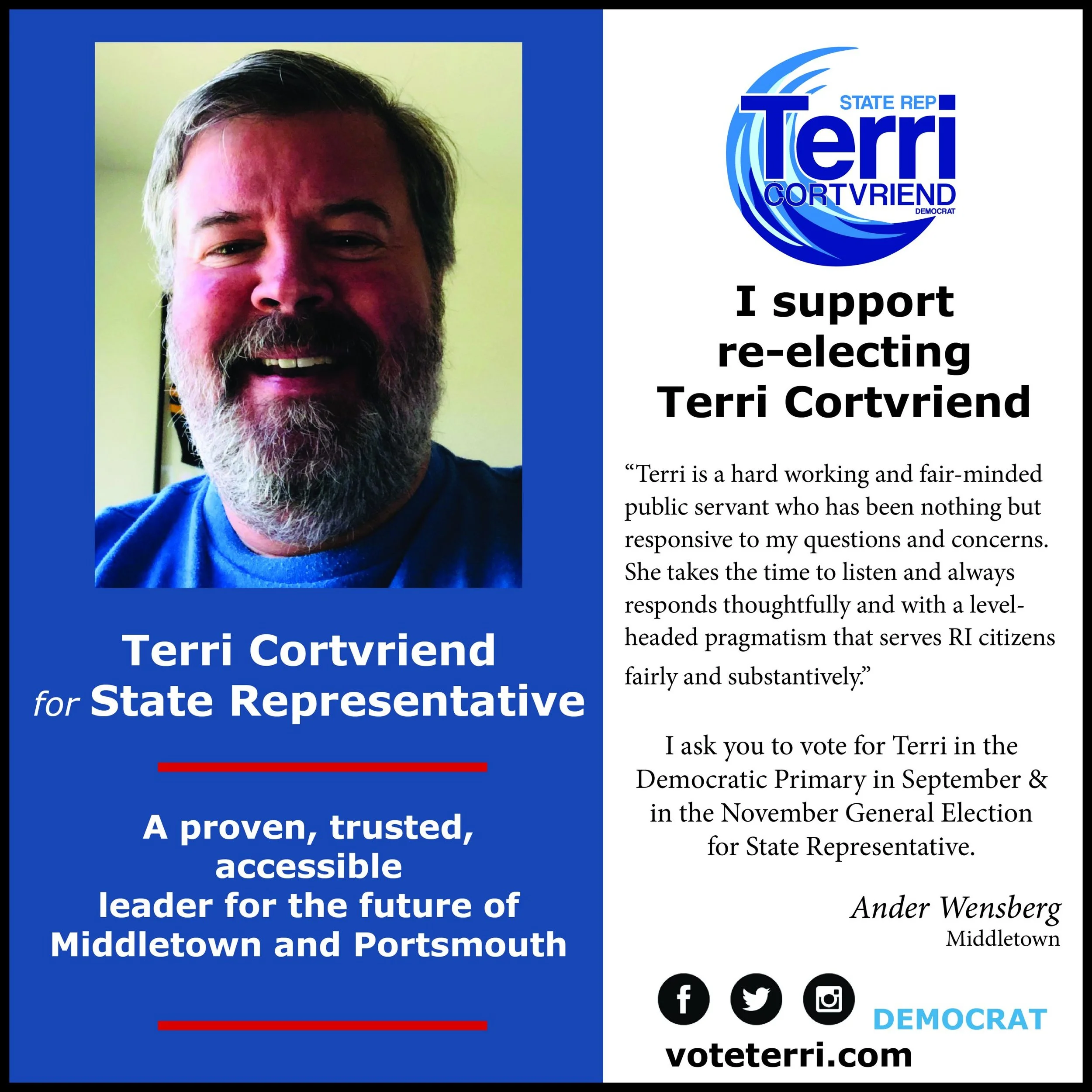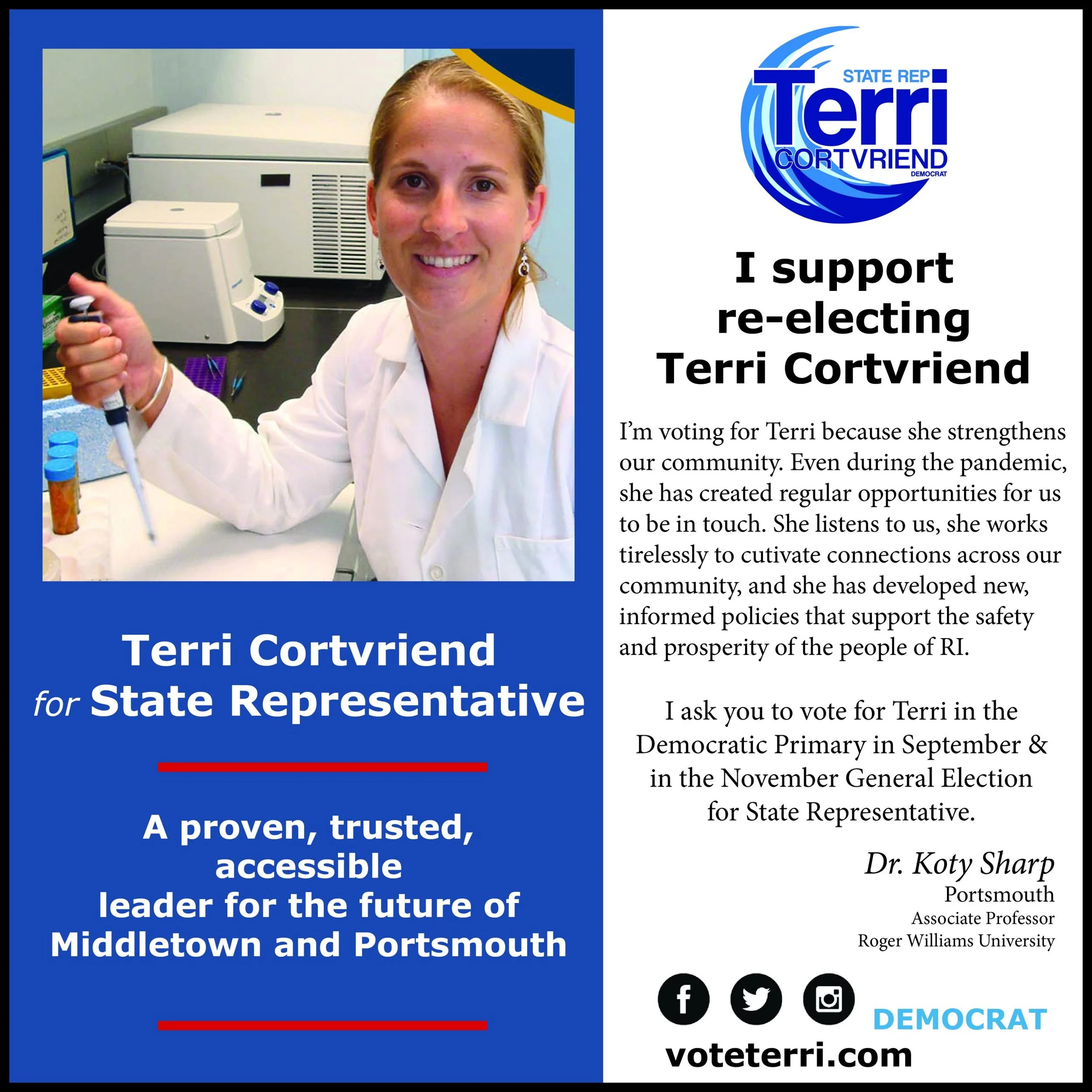 My name is Terri-Denise Cortvriend, Rhode Island House of Representatives, District 72, serving Middletown and Portsmouth.